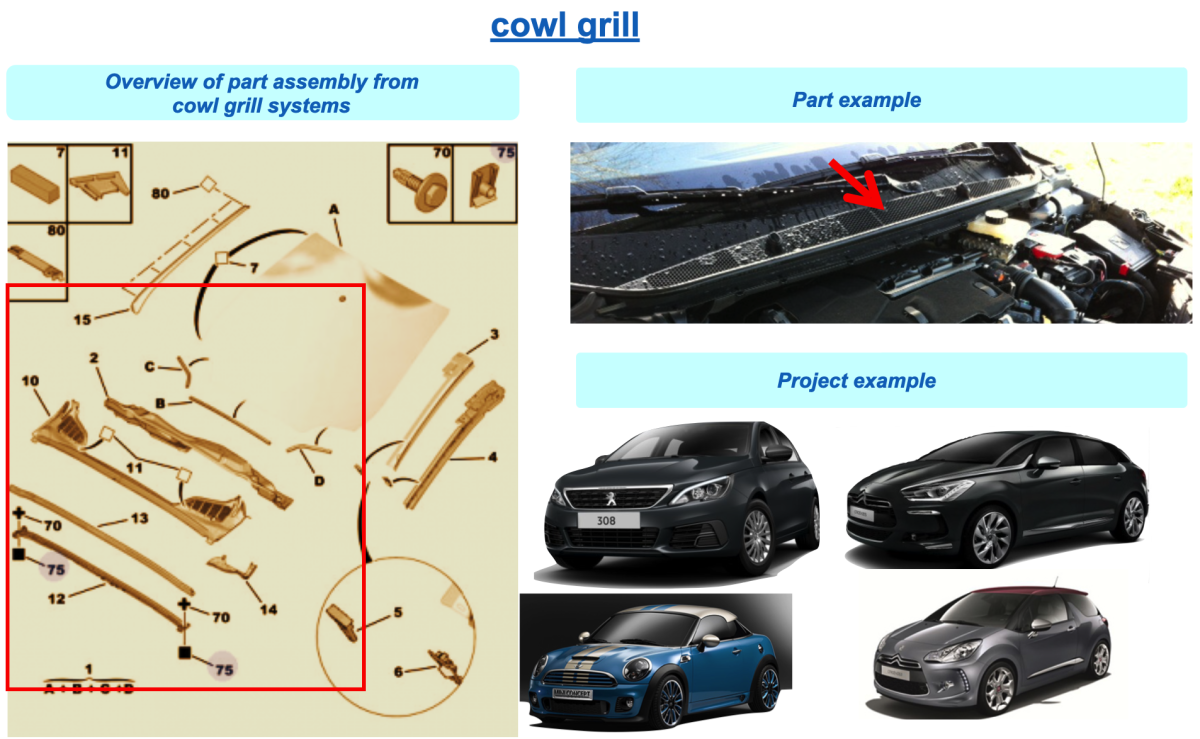 Meine Arbeit im Automobilsektor konzentrierte sich hauptsächlich auf die Entwicklung und Produktion von komplexen Kunststoffteilen, oft zweiteilig, wie: